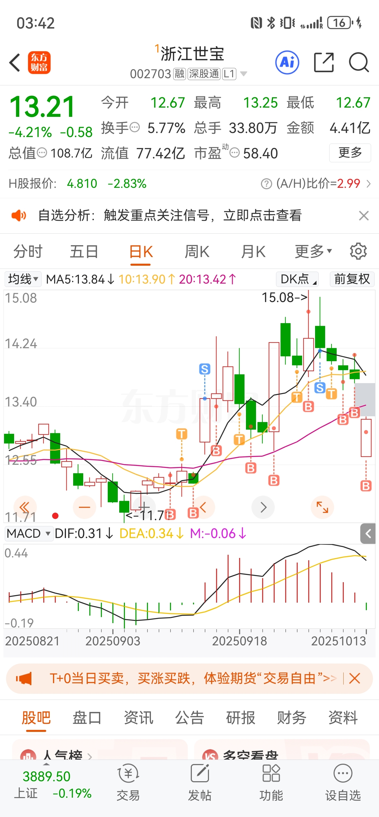 $浙江世宝(SZ002703)$ 加油 明天争取跟今天一样的跌幅。。。吃大肉
