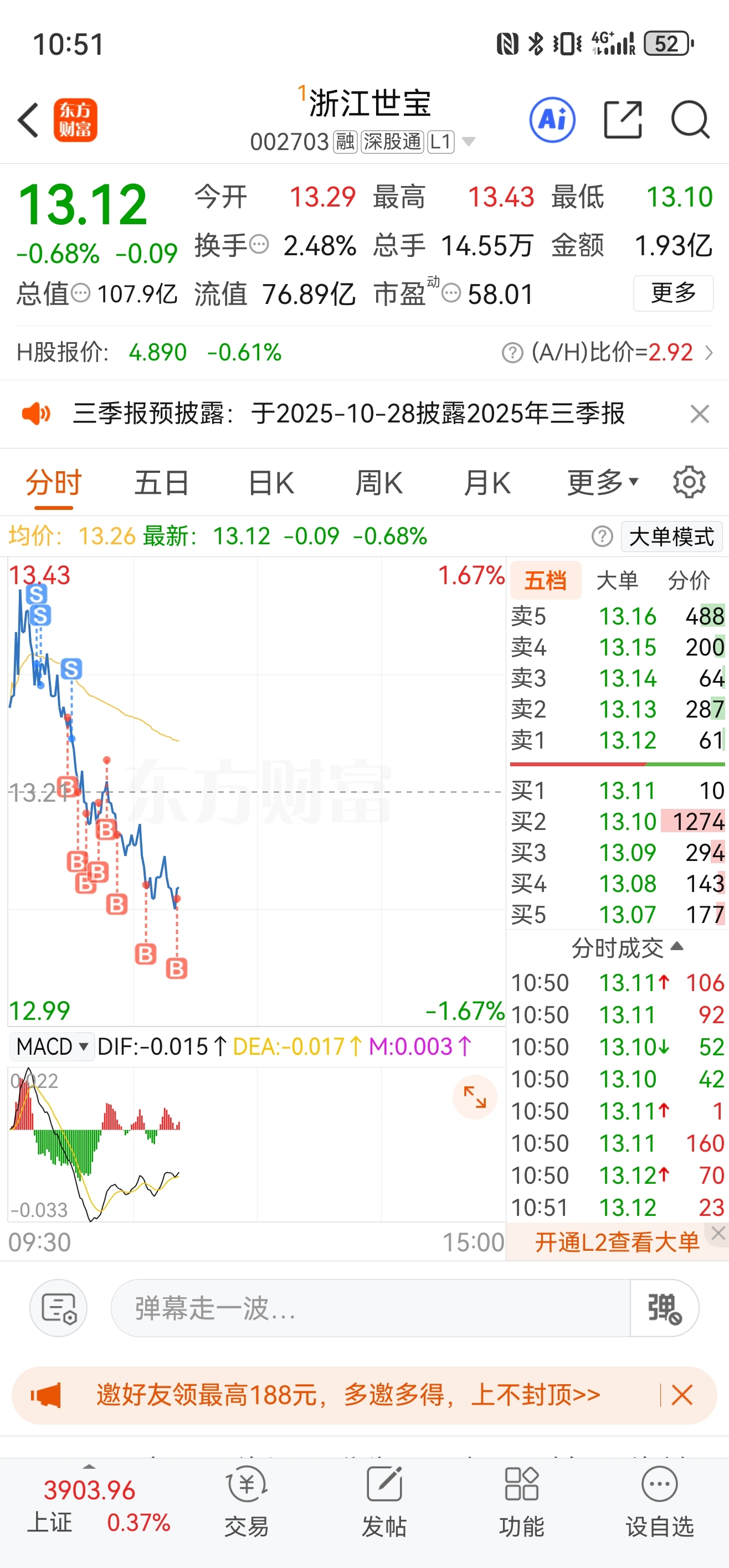 $浙江世宝(SZ002703)$ 竟然刚到今天的成本线。。。嘿嘿