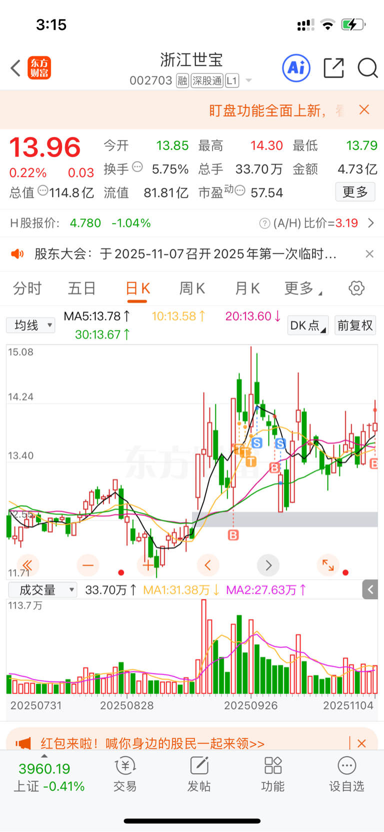 $浙江世宝(SZ002703)$ 买了两次都没有在世宝挣到过钱,科技股大多数调整,明天到你起飞了吧