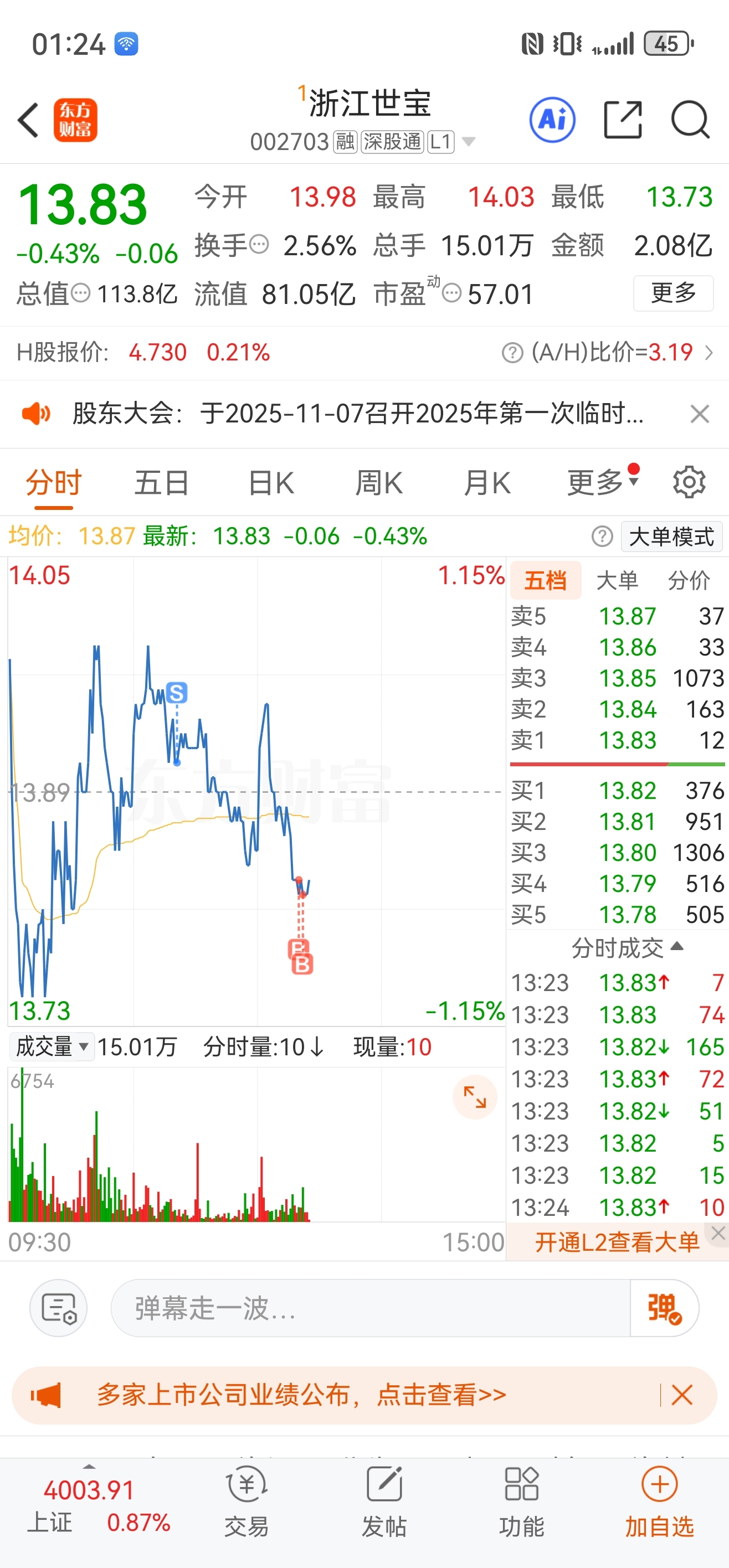 $浙江世宝(SZ002703)$ 不知道这波有没有把饭钱T出来