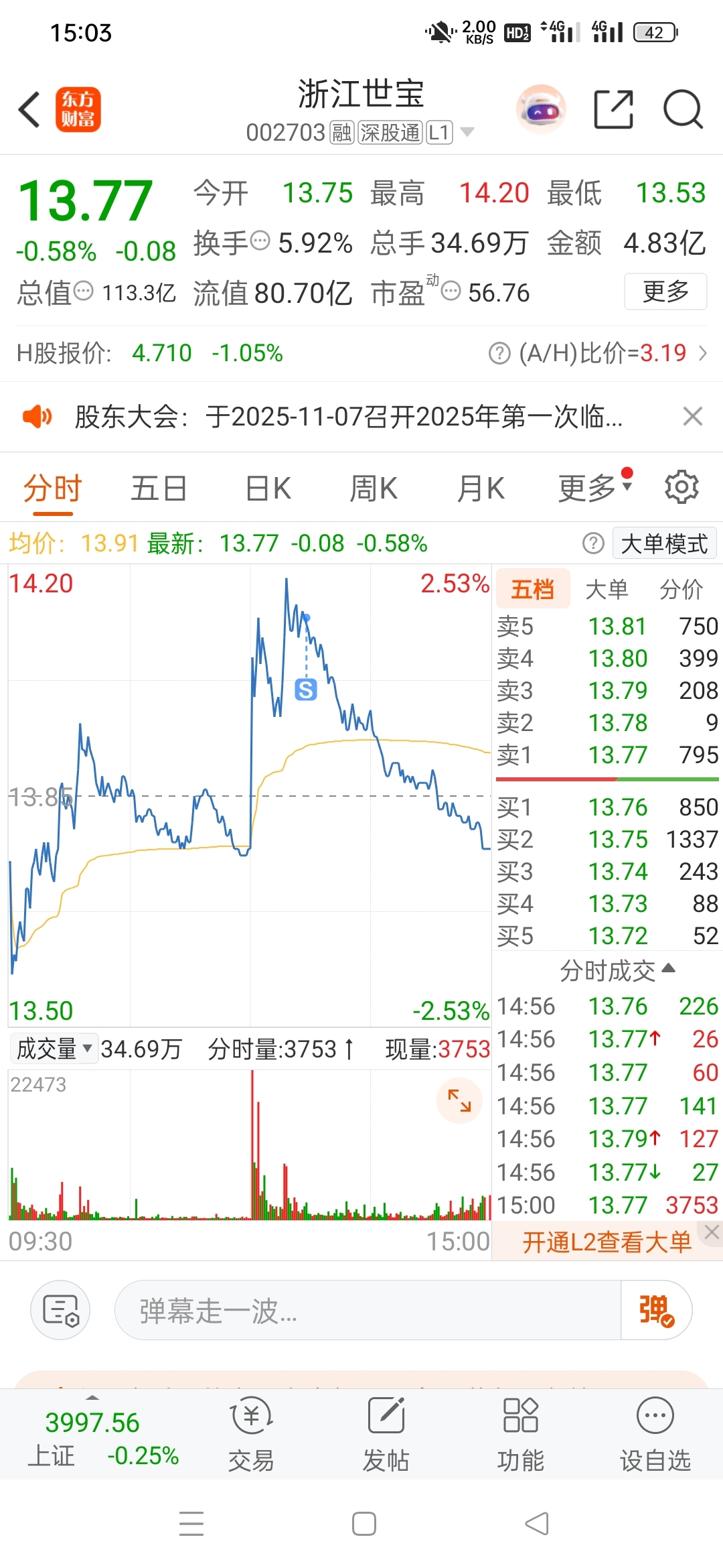 $浙江世宝(SZ002703)$ 清仓了,不想格局了