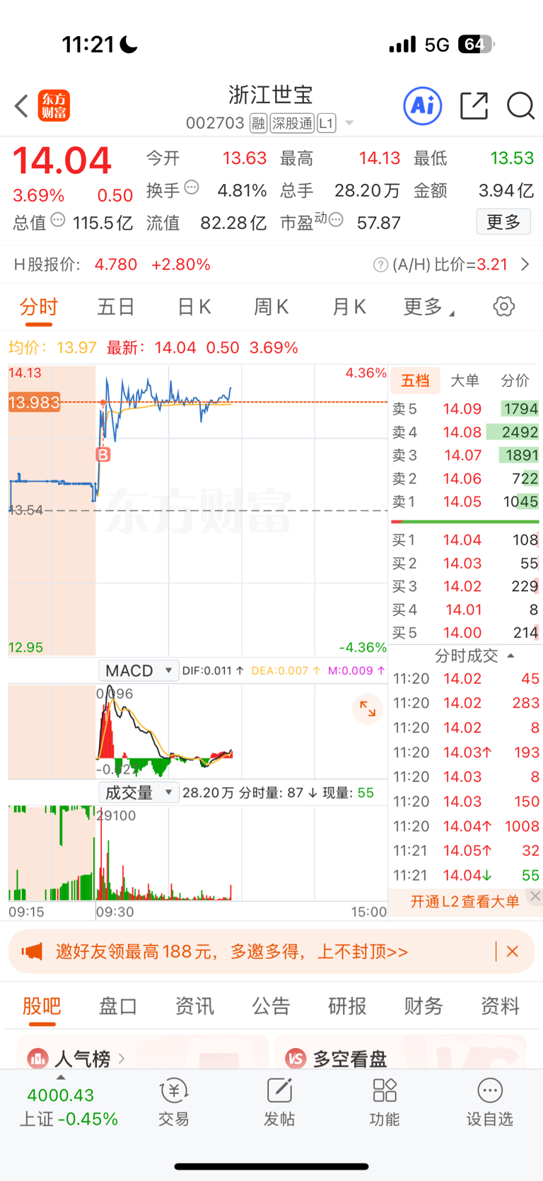 $浙江世宝(SZ002703)$ 早盘进了,关注我每天复盘思路哦