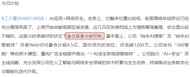 $三六零(SH601360)$:它昨日反弹的小阳线,技术上还是有蓄势的状态啊,并且AI应用方向有望轮动,那么这里它还有反弹的预期。它近期横盘强势震荡,缩量逐渐萎缩了,也到了变盘的时间。三六零,是坤哥本周二早文挖掘的,当时讲了突破预期,目前还在跟踪。小家会说买点!