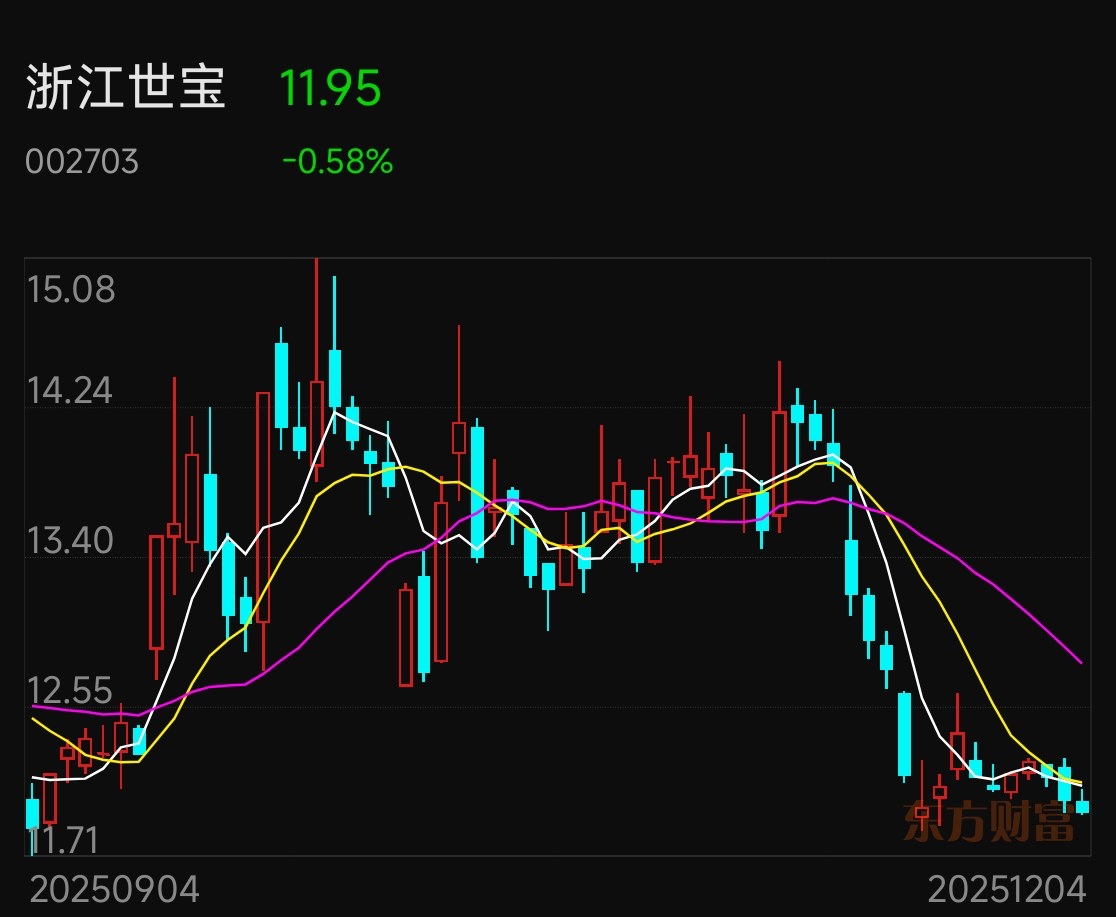 $浙江世宝(SZ002703)$ 逃命吧各位,周线跌破11.87元是大概率事件!!!这里的庄和操盘机构是准备把你们吃干抹净的,和大盘行情压根无关!标准的空头排列,来个小利空或者大盘调整,会动不动就随时来个中阴杀跌。
