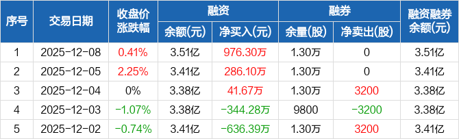 浙江世宝:连续3日融资净买入累计1304.07万元(12-08)