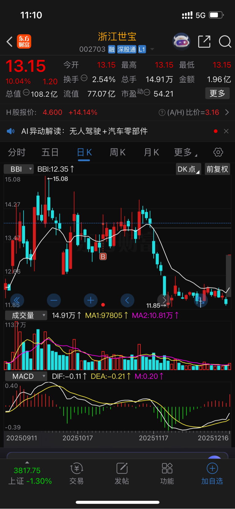 $浙江世宝(SZ002703)$
