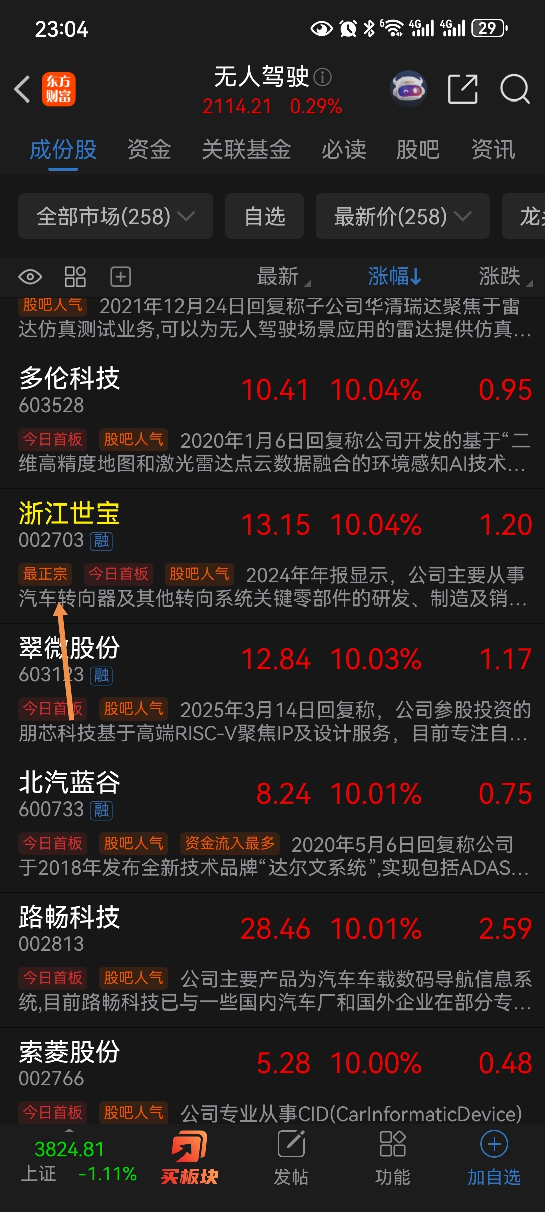 $浙江世宝(SZ002703)$ 无人驾驶板块最正宗?