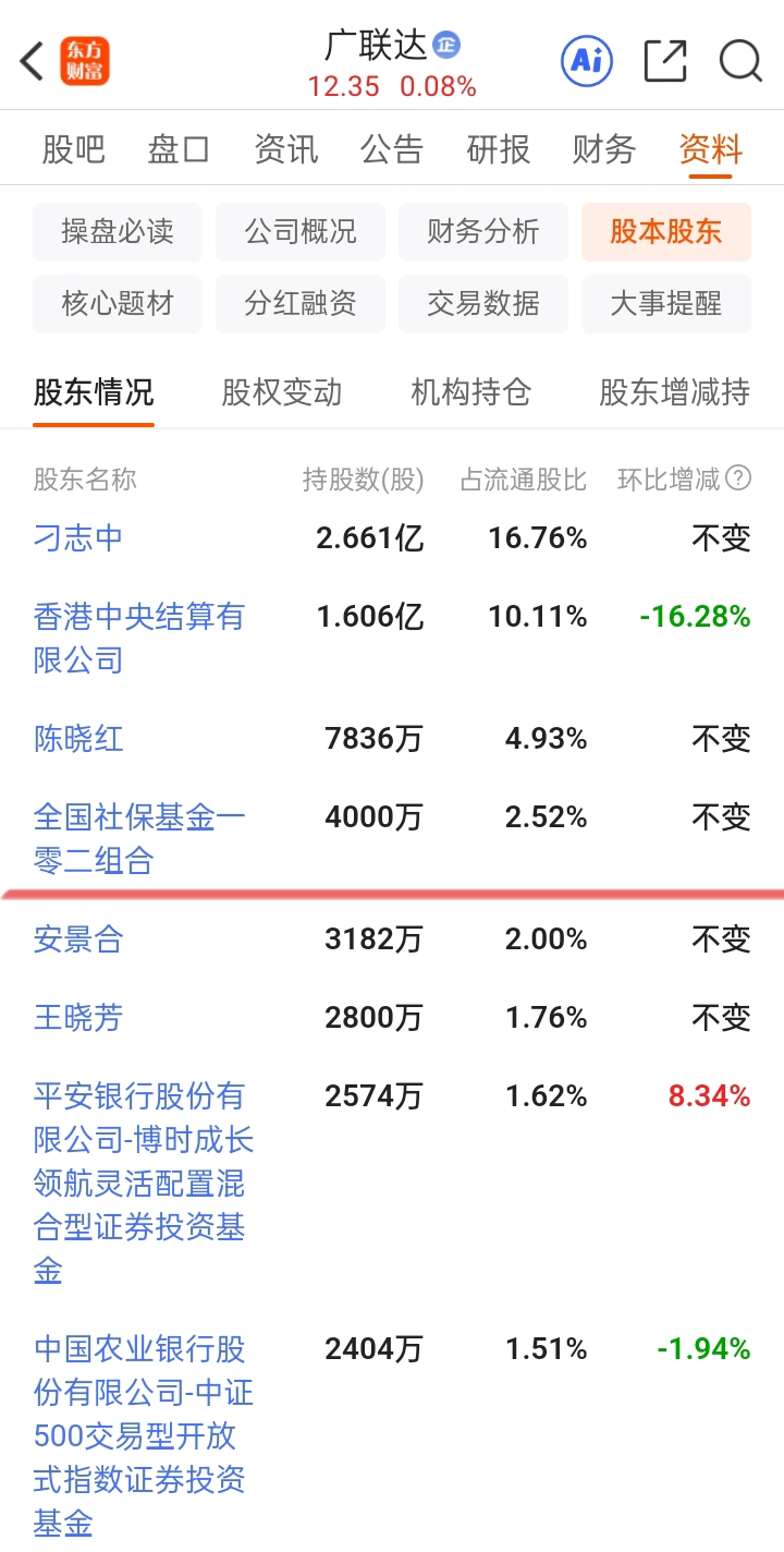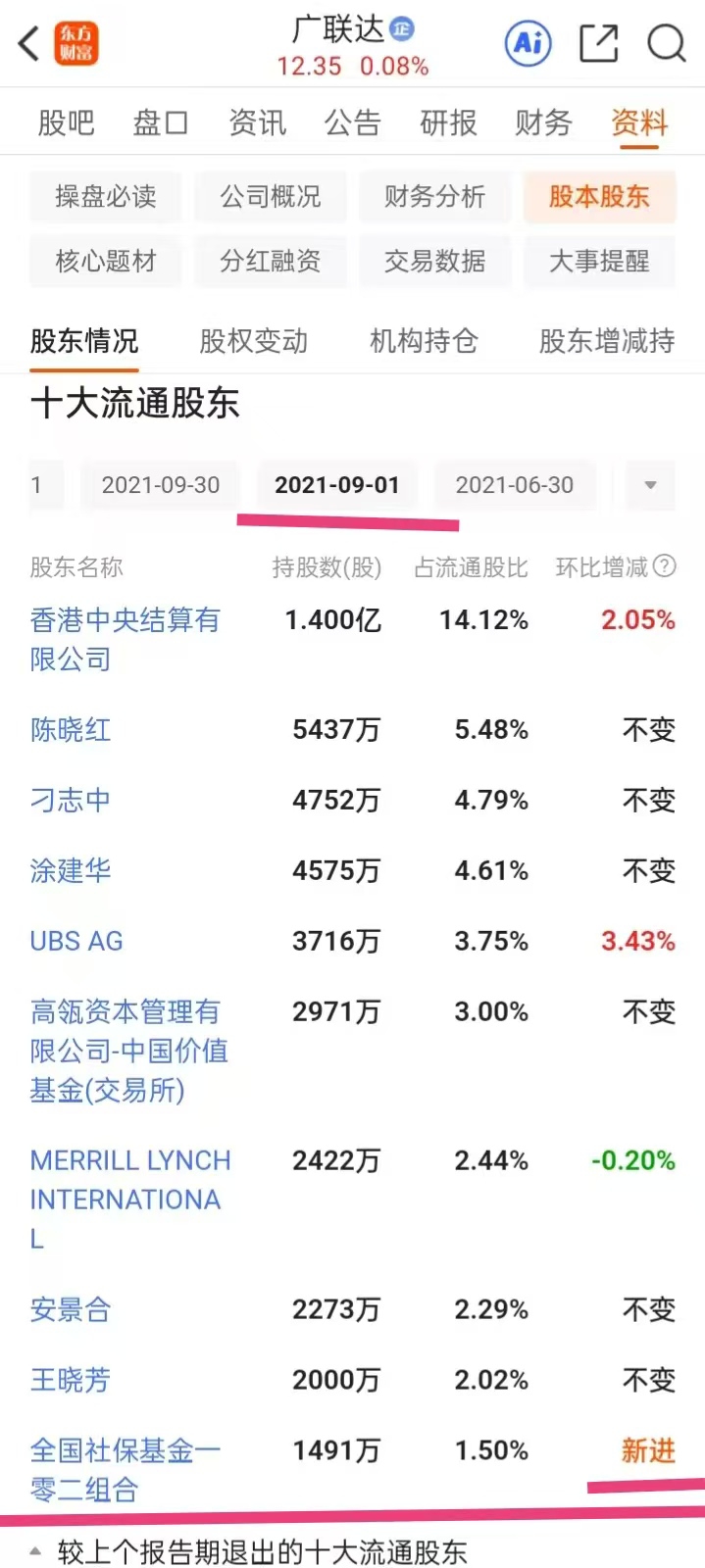 11.2025年6月30公示中(前一公示期2025年3月31日持股4217万股)全国社保基金一零二组合减仓-217万股至4000万股(占流通股2.52%)。2025年4月-2025年6月广联达股价最高16.05元/股,最低12.94元/股,卖股平均大致成本13.87元/股=12.94+(16.05-12.94)*30%。则买入成本-3010万元=-217万股*13.87元/股,投资总资金成本(2025年6月30日至今算0年)即-3010万元。