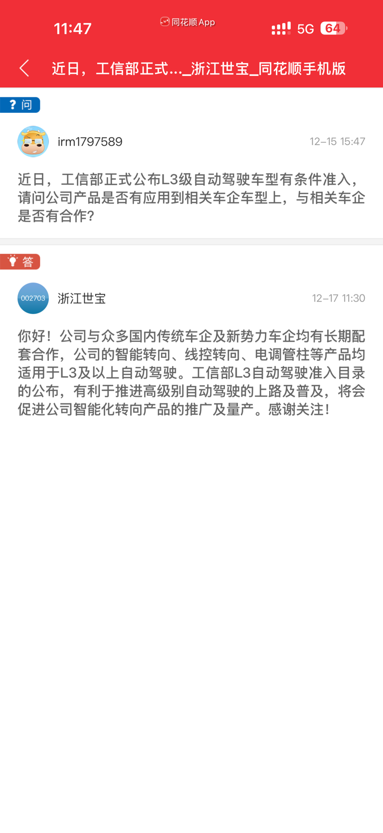 $浙江世宝(SZ002703)$