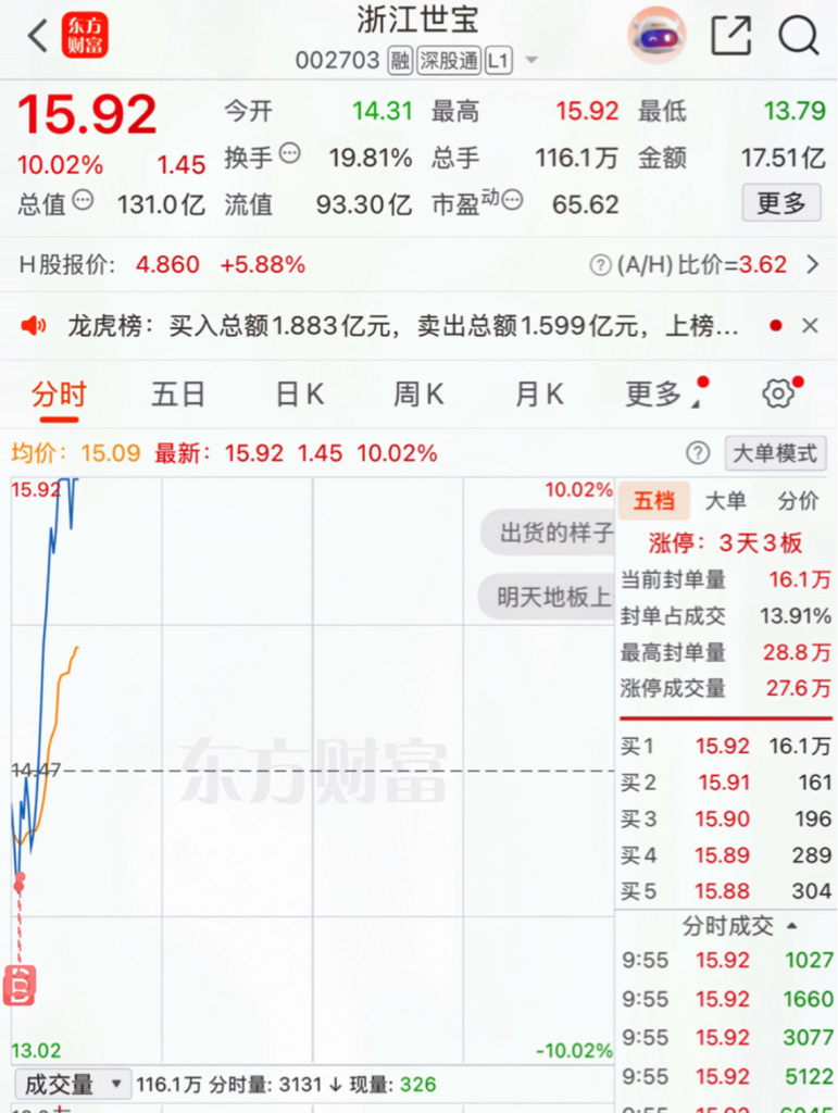 $浙江世宝(SZ002703)$ 哎呀呀,洗个脸的功夫吃了口大的。