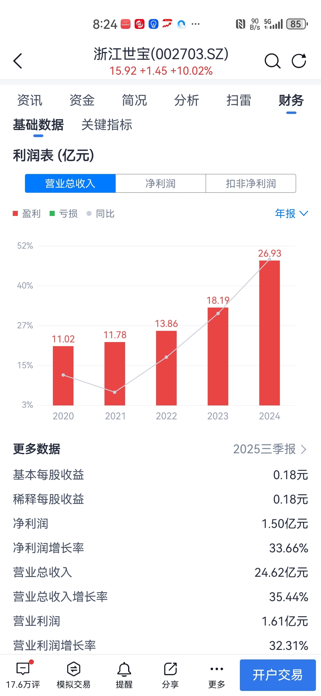 $浙江世宝(SZ002703)$ 优秀的财务报表不是妖股的必要条件,但一定是妖股的催化剂。(机构+游资+散户合力)+(热点孵化)+优秀的财务报表=妖王