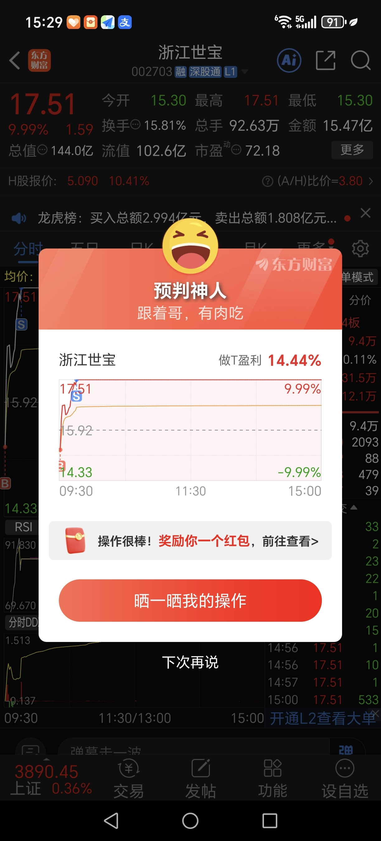 $浙江世宝(SZ002703)$ 只是做了个t,明天继续做