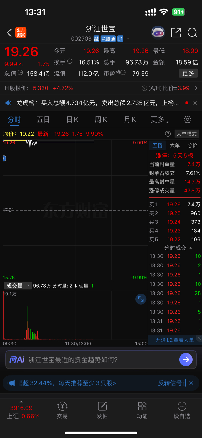 $浙江世宝(SZ002703)$ 今天开盘封单大幅低于预期,且盘中反复炸板,必出。看明天是否能弱转强,再入。否则可能短期要调整。