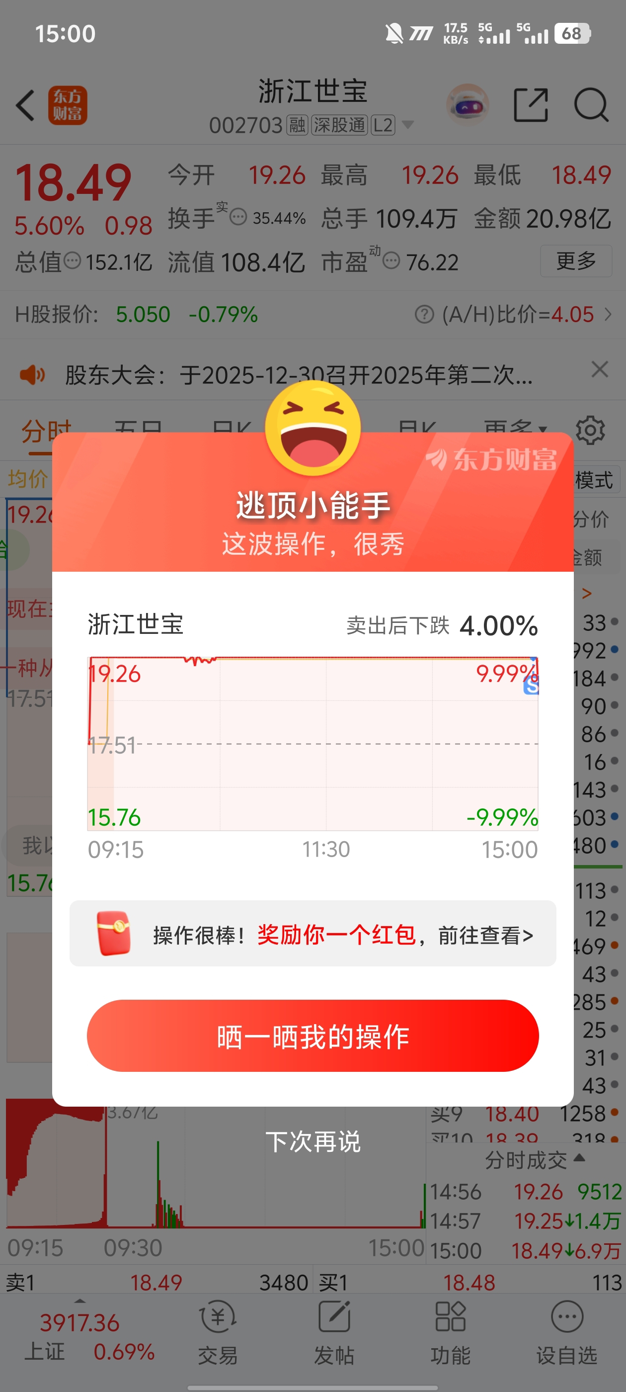 $浙江世宝(SZ002703)$ 慢一秒就完蛋