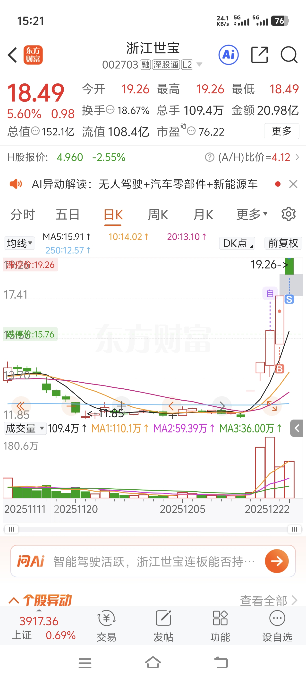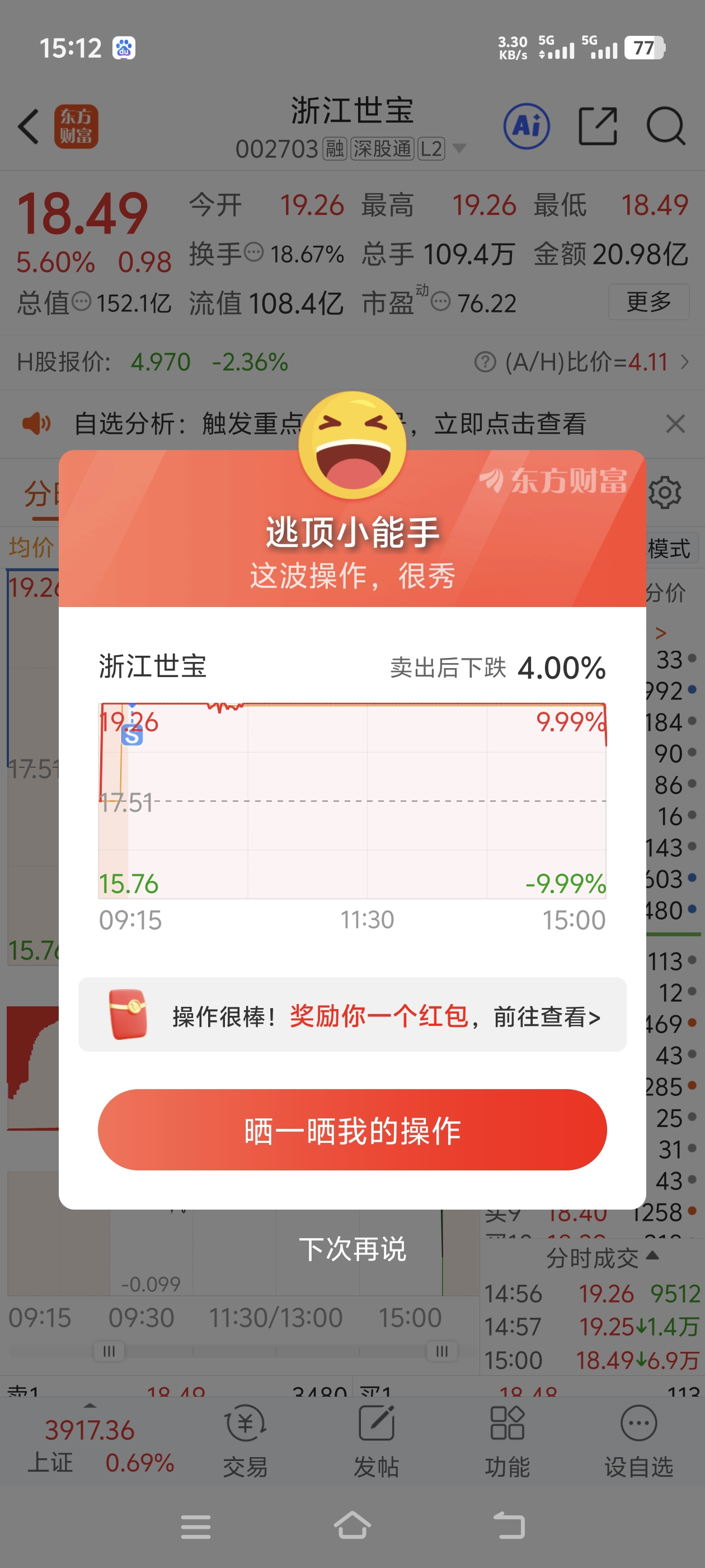 卖出浙江世宝,感谢感谢,今天空,明天世宝弱转强再干