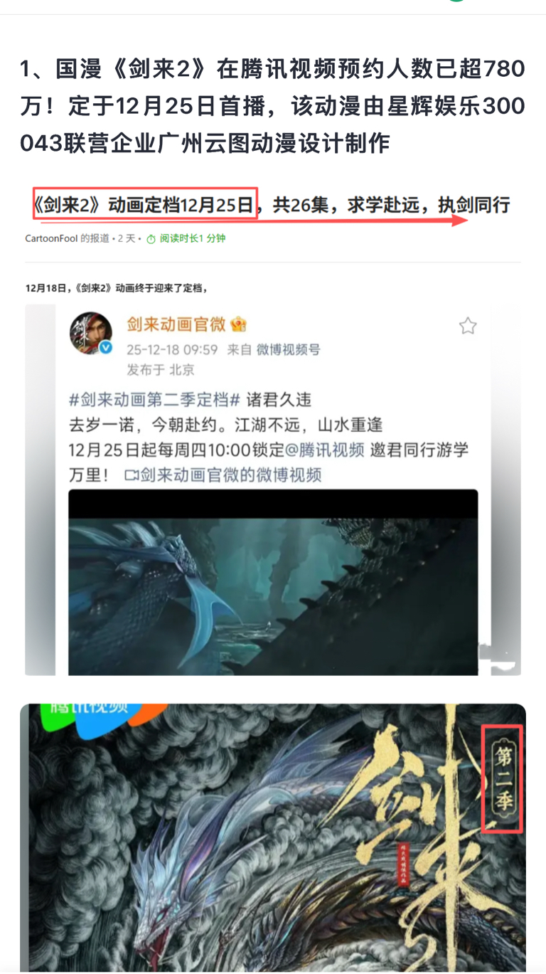 风来了#星辉娱乐【剑来2】腾讯视频预约已经突破800万~经典国漫或将引爆元旦!