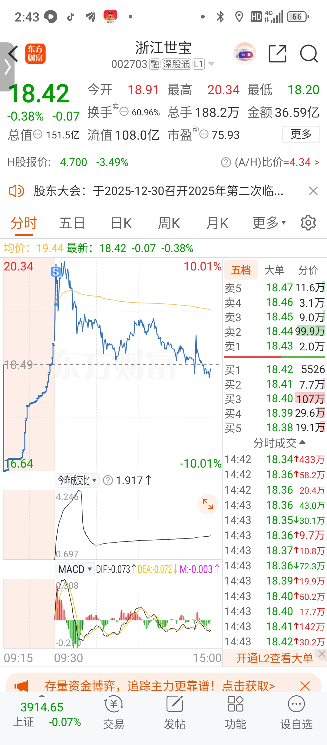 $浙江世宝(SZ002703)$ 还好早上卖了