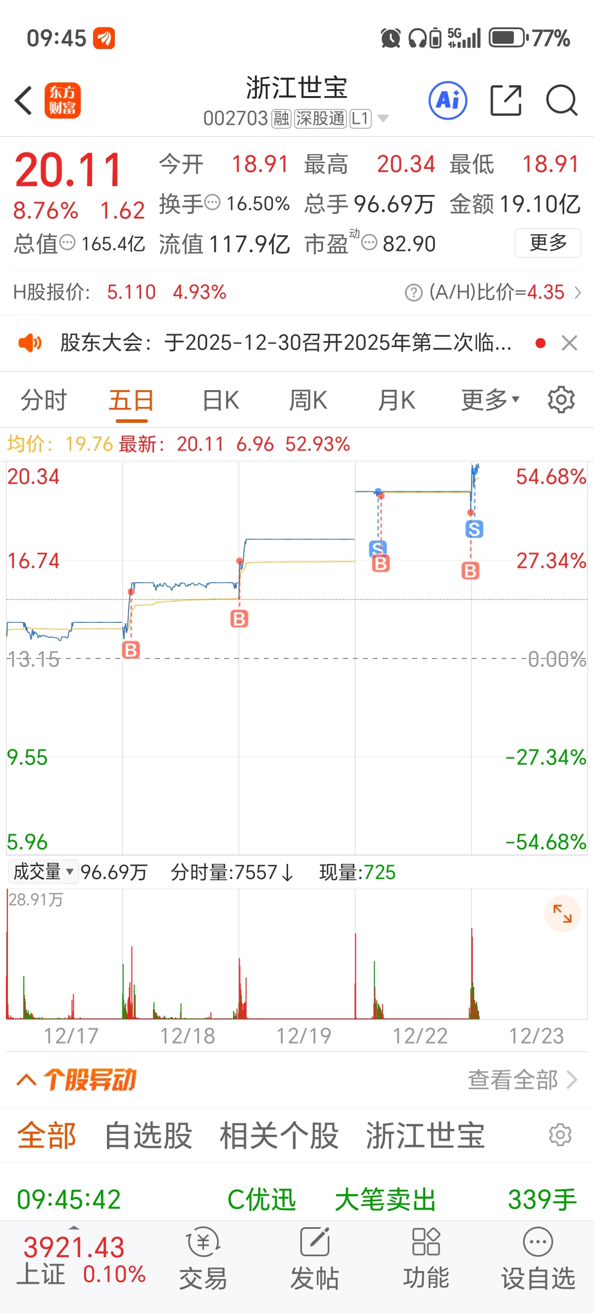 $浙江世宝(SZ002703)$ 早上走了一半 还有半仓在给你一次机会 明天在不表态就清仓