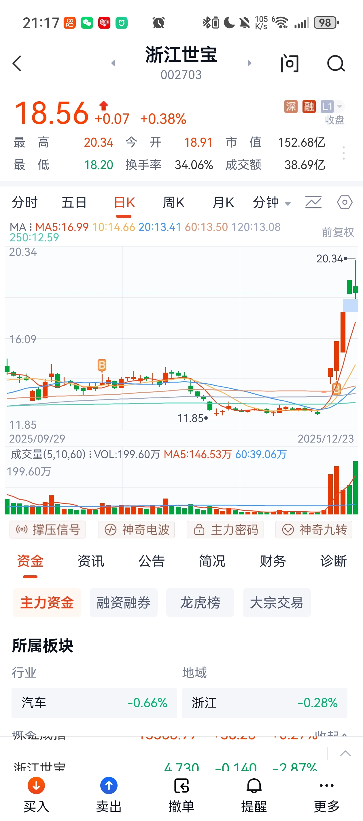 $浙江世宝(SZ002703)$ 留下发财!赚了40多个点走了!赚了我认知的钱!满足了!谢谢主力 谢谢宝哥