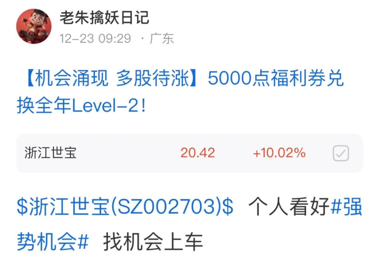 $浙江世宝(SZ002703)$ 昨天早上推荐的,今天直接涨停,牛牛,点赞评论要200。明天还会继续推荐。