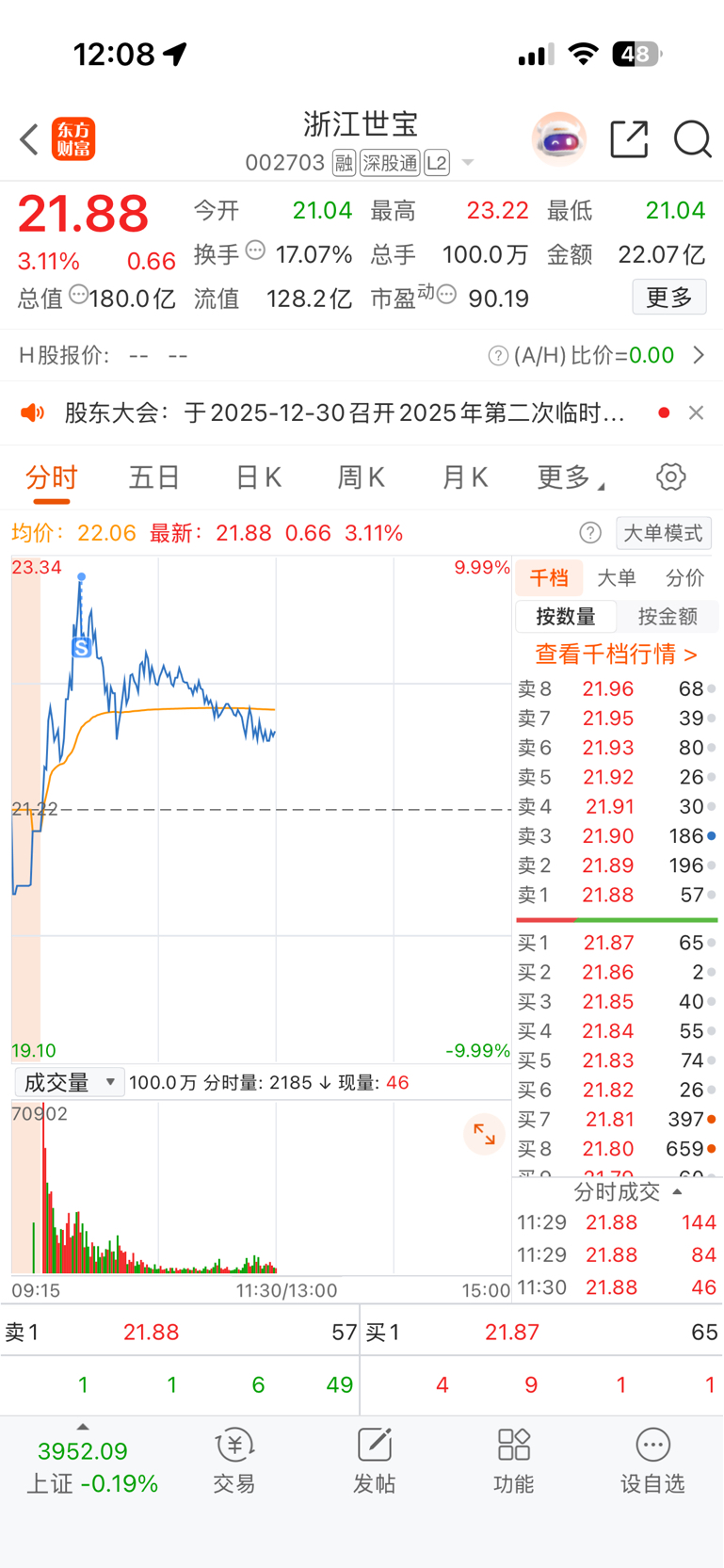 $浙江世宝(SZ002703)$