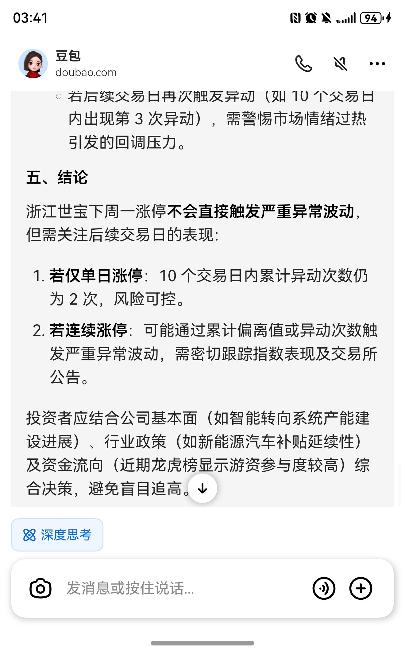 浙江世宝下周一就算涨停也没有触发异动,大家不要担心了好吧