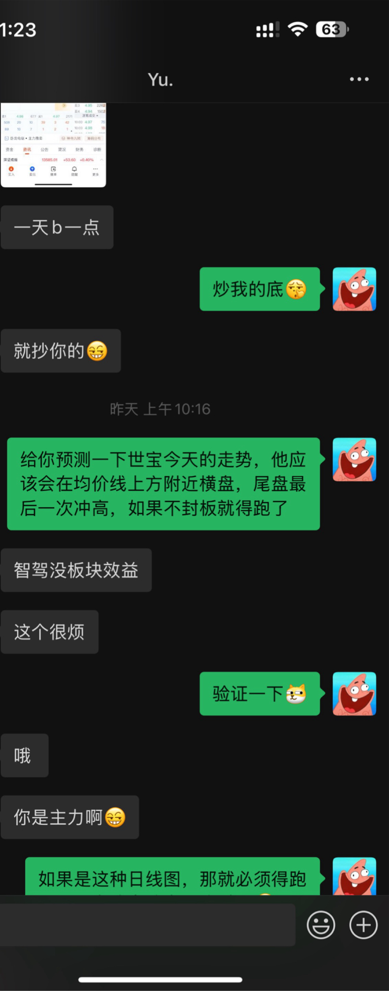 今天尾盘出了上板有点晚,周一不怎么看好。虽然卖出了,期待里面的人吃肉,期待打脸