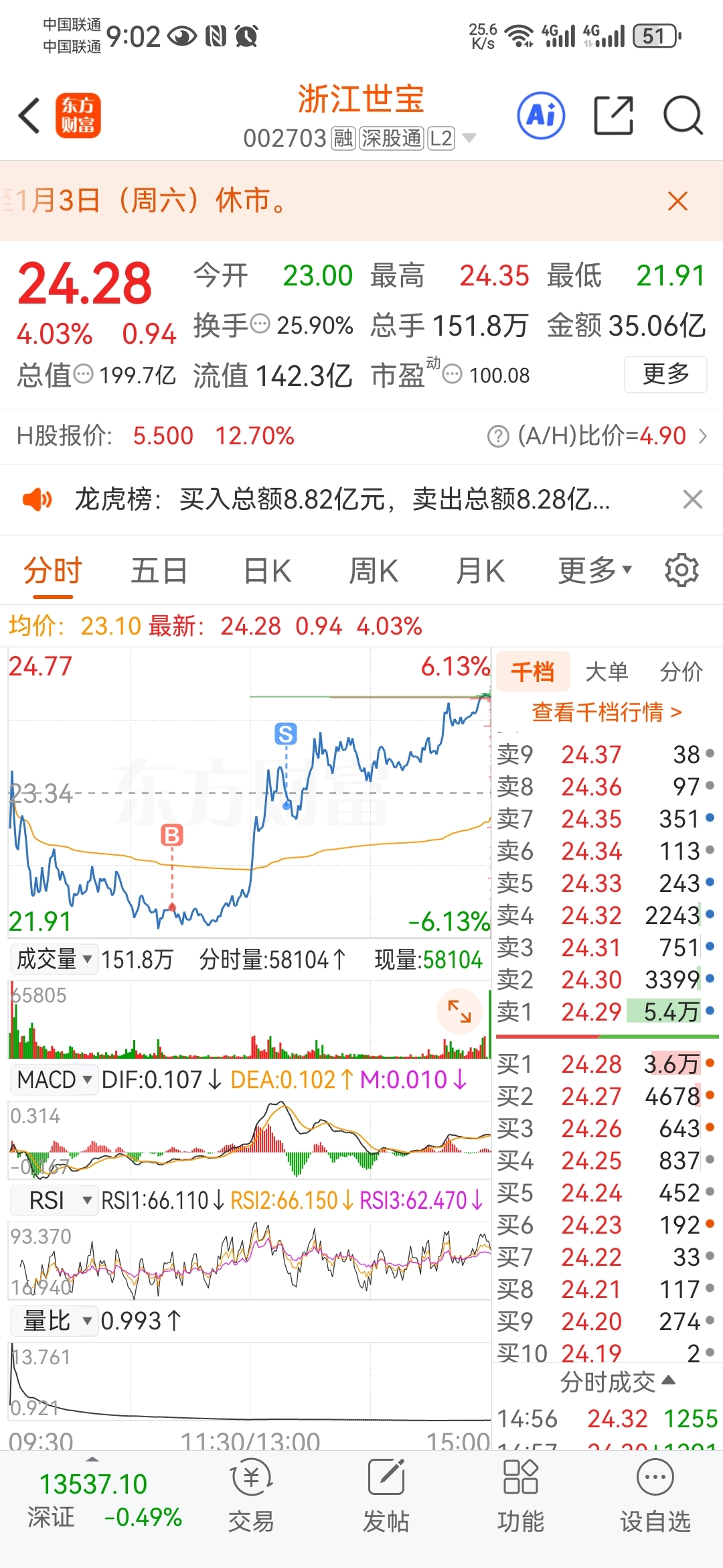 $浙江世宝(SZ002703)$ 不要怕就是干