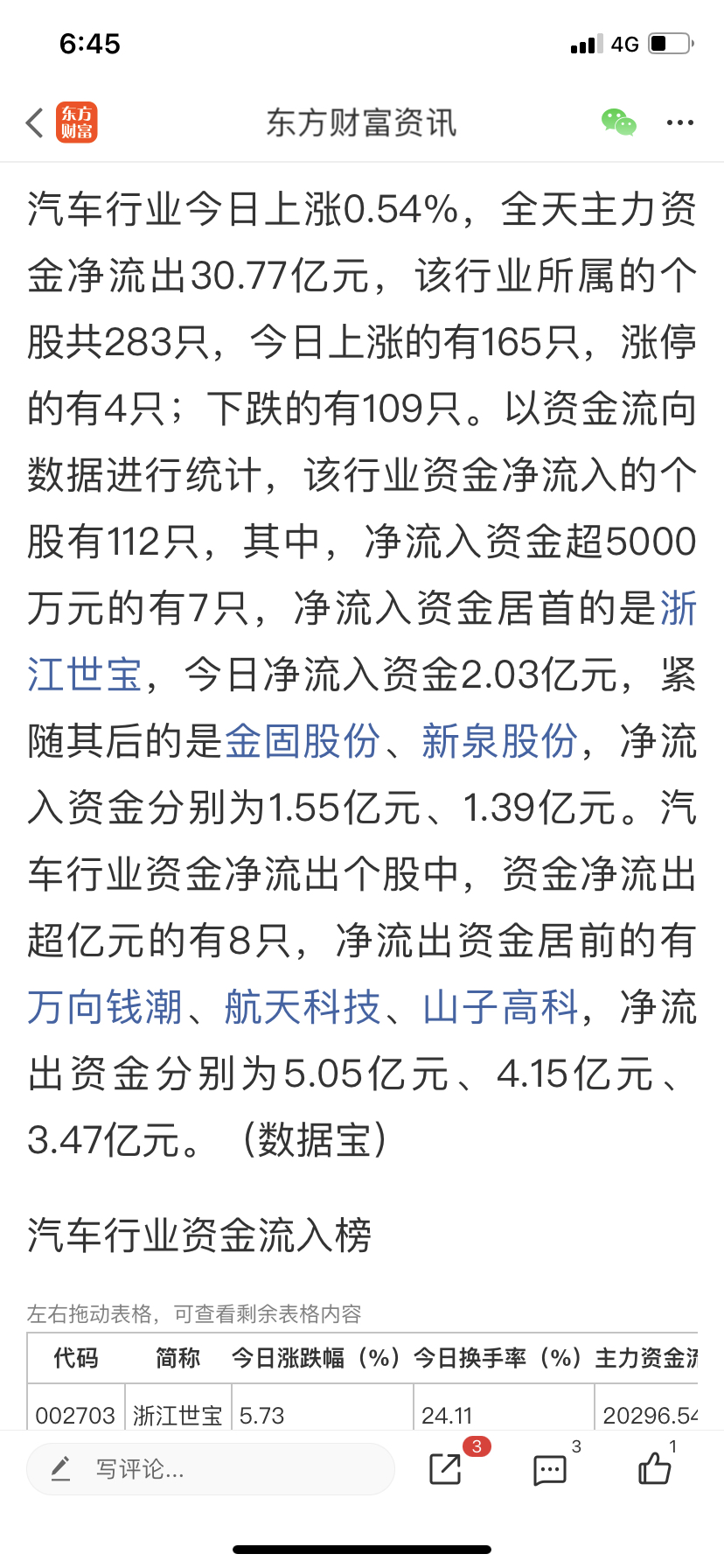 $浙江世宝(SZ002703)$ 还好资金是流入的