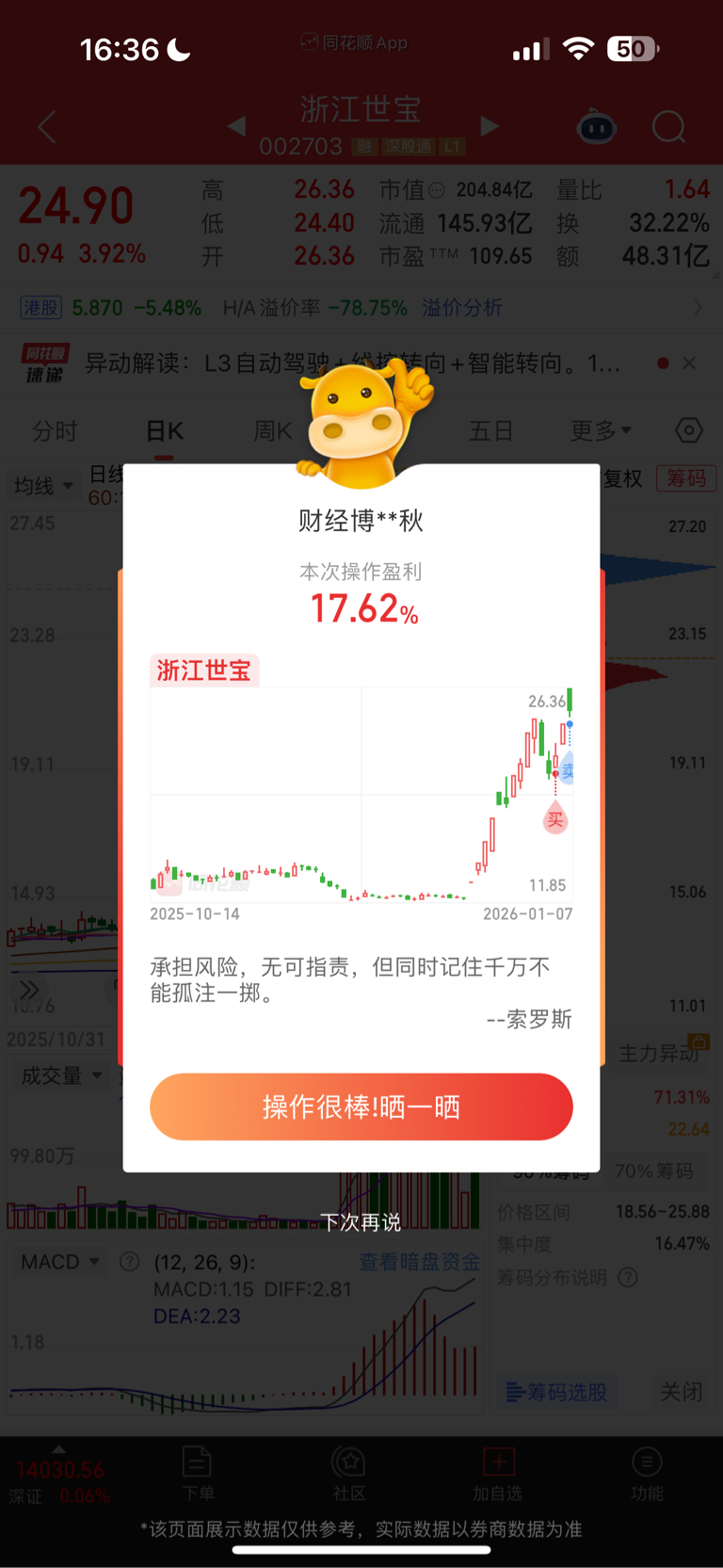 $浙江世宝(SZ002703)$ 还能涨到30不