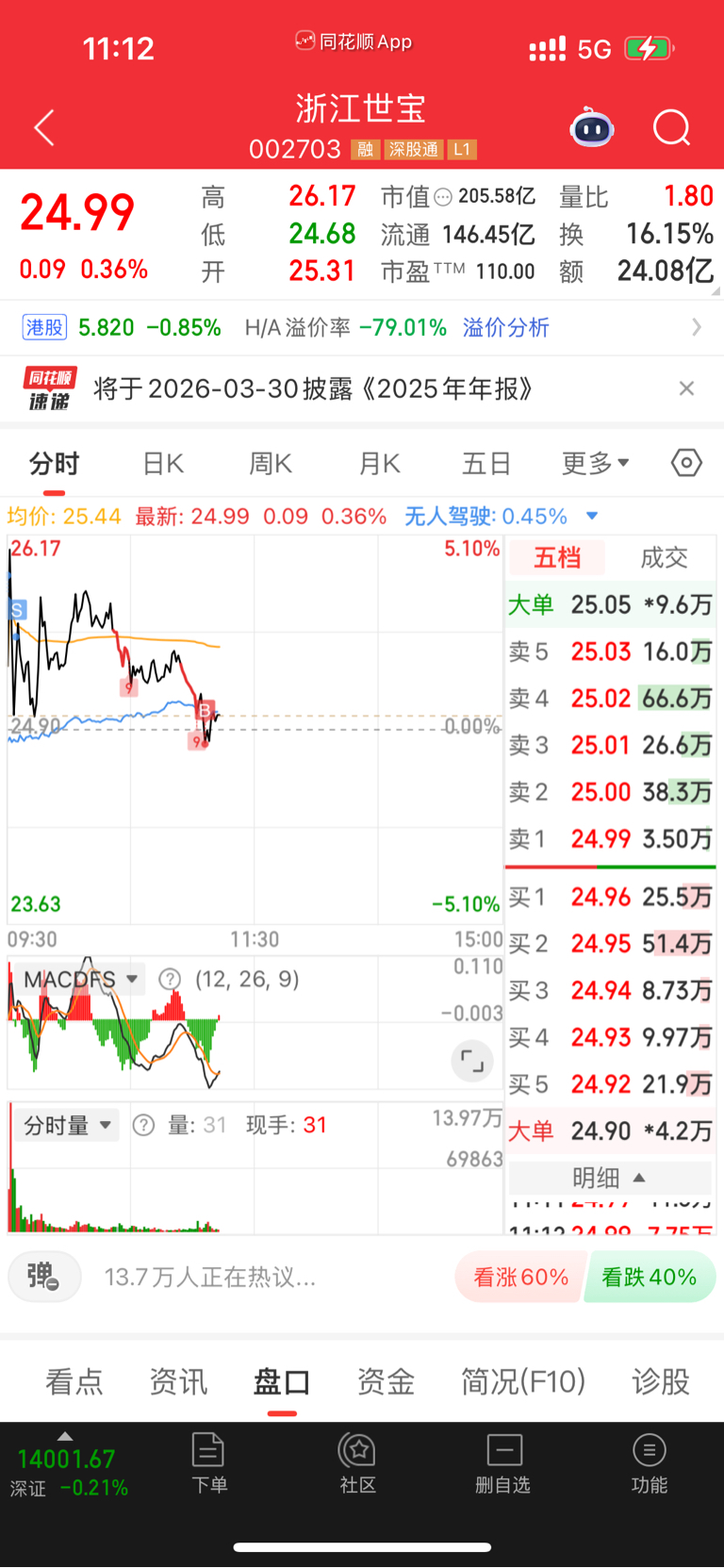 $浙江世宝(SZ002703)$ 简单T四个点,下班