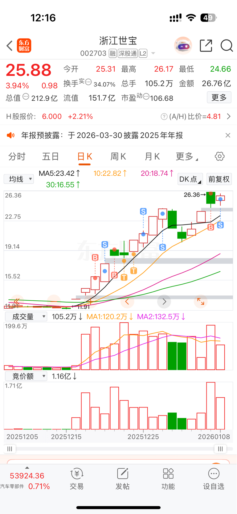 $浙江世宝(SZ002703)$ 是个好票,下次还上你
