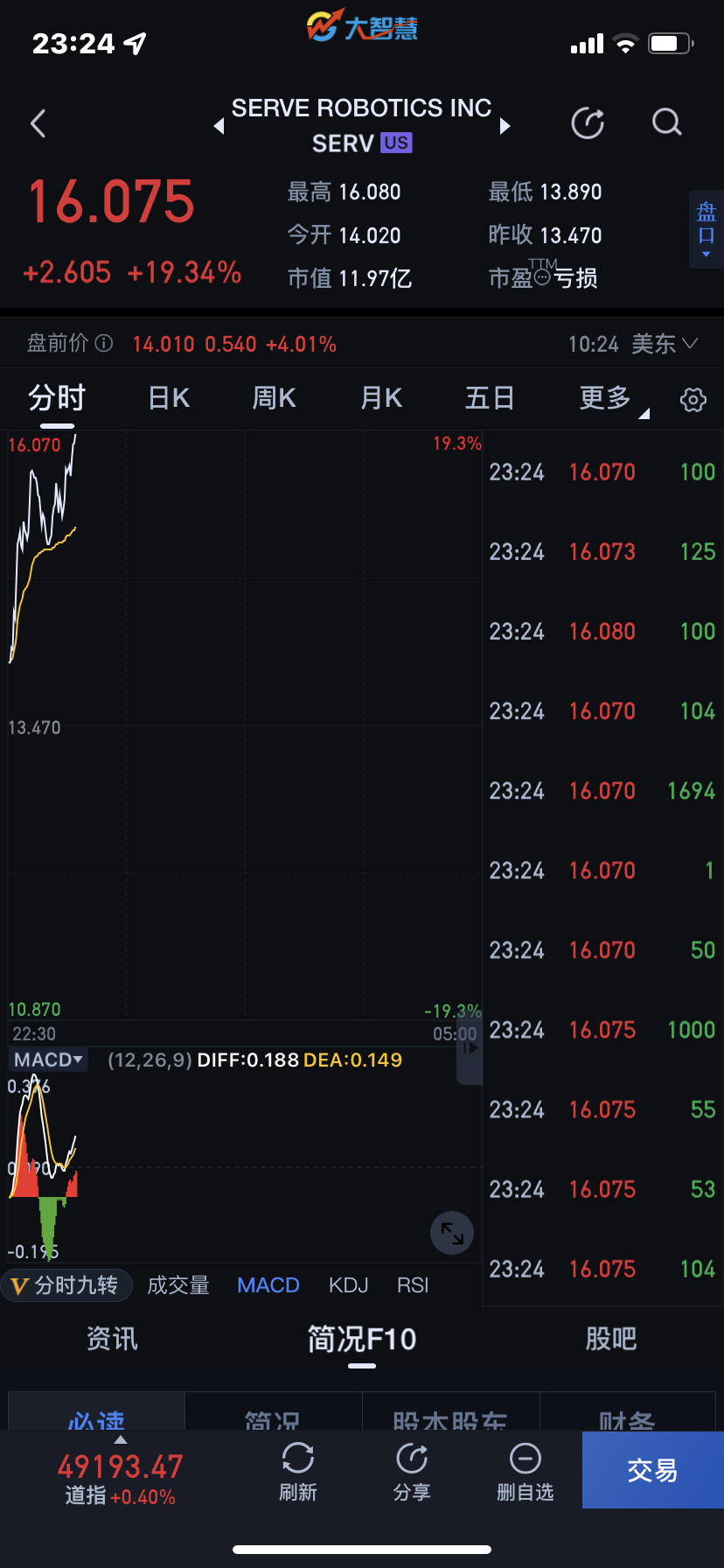 $浙江世宝(SZ002703)$ 美股无人驾驶暴涨,牛逼啊!