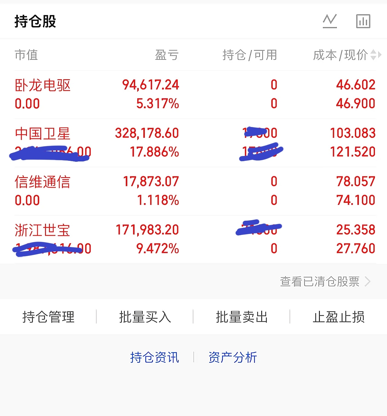 $浙江世宝(SZ002703)$ $中国卫星(SH600118)$ $卧龙电驱(SH600580)$ 部份高位的都清了!先控制住回撤!