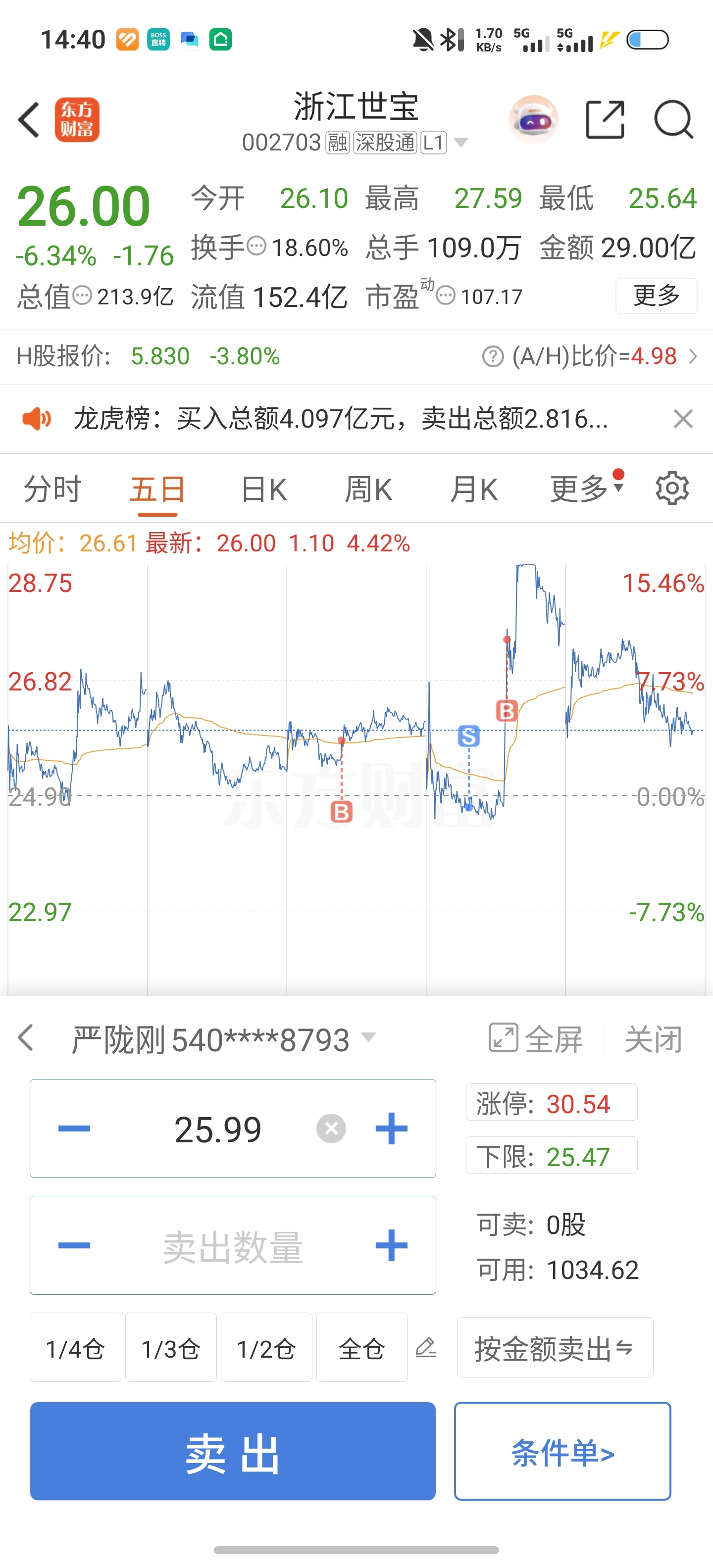$浙江世宝(SZ002703)$ 昨天买的为啥今天不让卖了