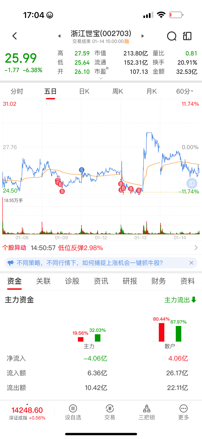 $浙江世宝(SZ002703)$ 格局没了八个点 依然看好你