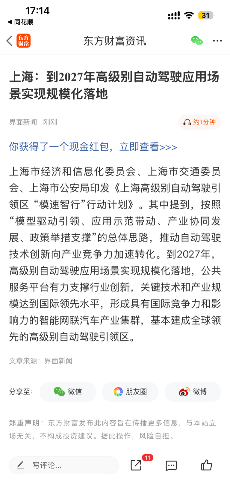 $浙江世宝(SZ002703)$ 明天无人驾驶再没反应就减仓了。
