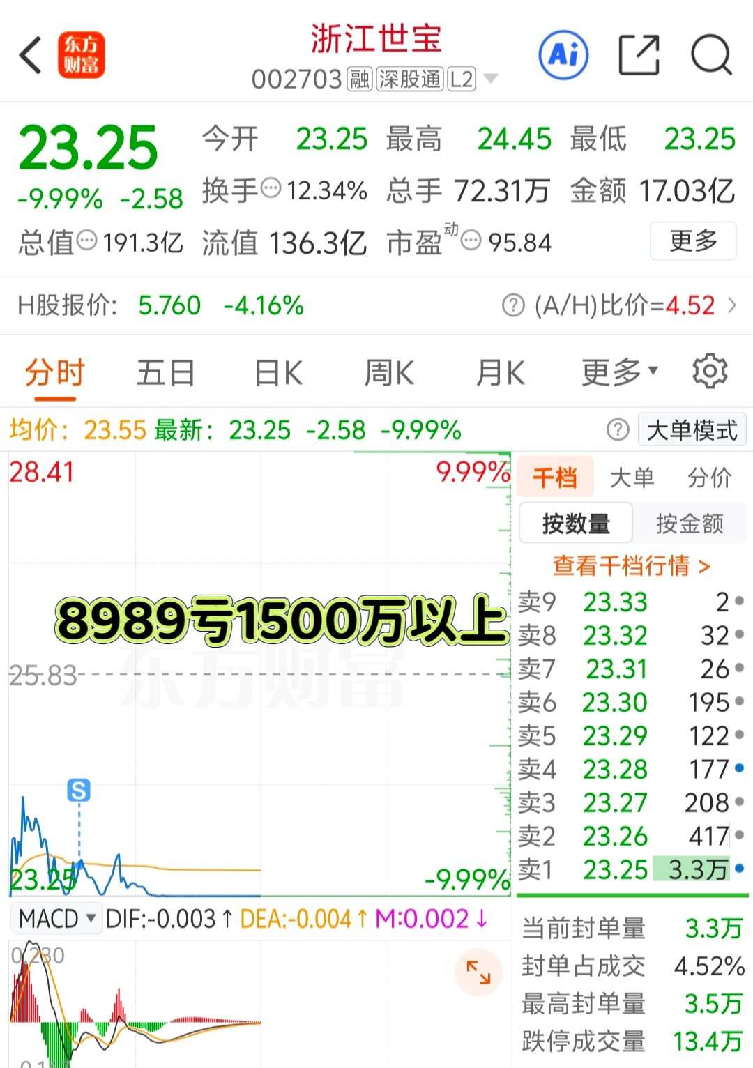 $浙江世宝(SZ002703)$ 请8989大佬,明天自救下