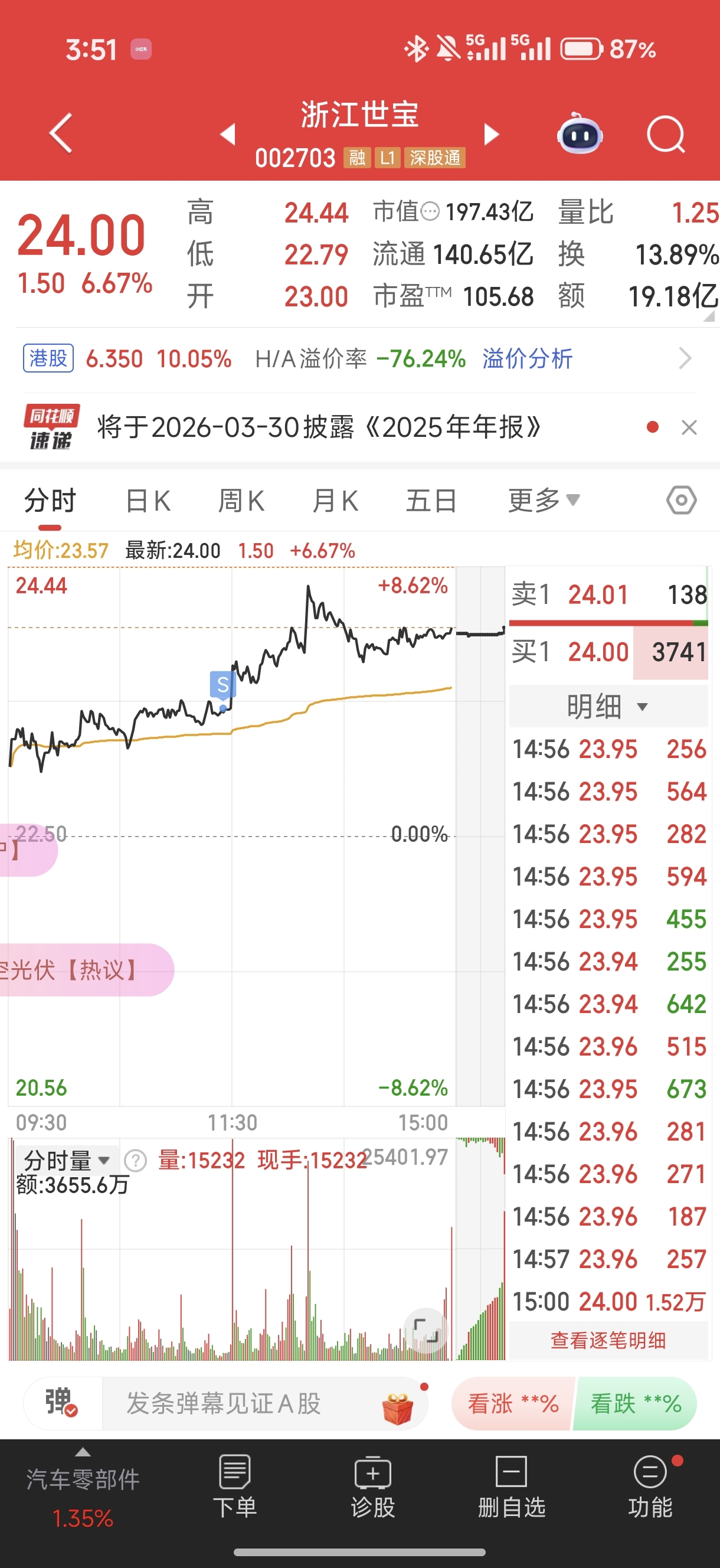 $浙江世宝(SZ002703)$ 卖飞了呀,下周一低开让我接