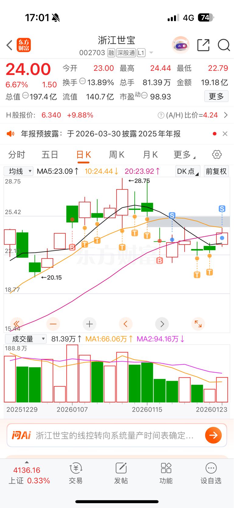 $浙江世宝(SZ002703)$ 宝宝这个票24买的,T呀T T了16个点,今天给我T飞了,宝宝,你不要我了吗?