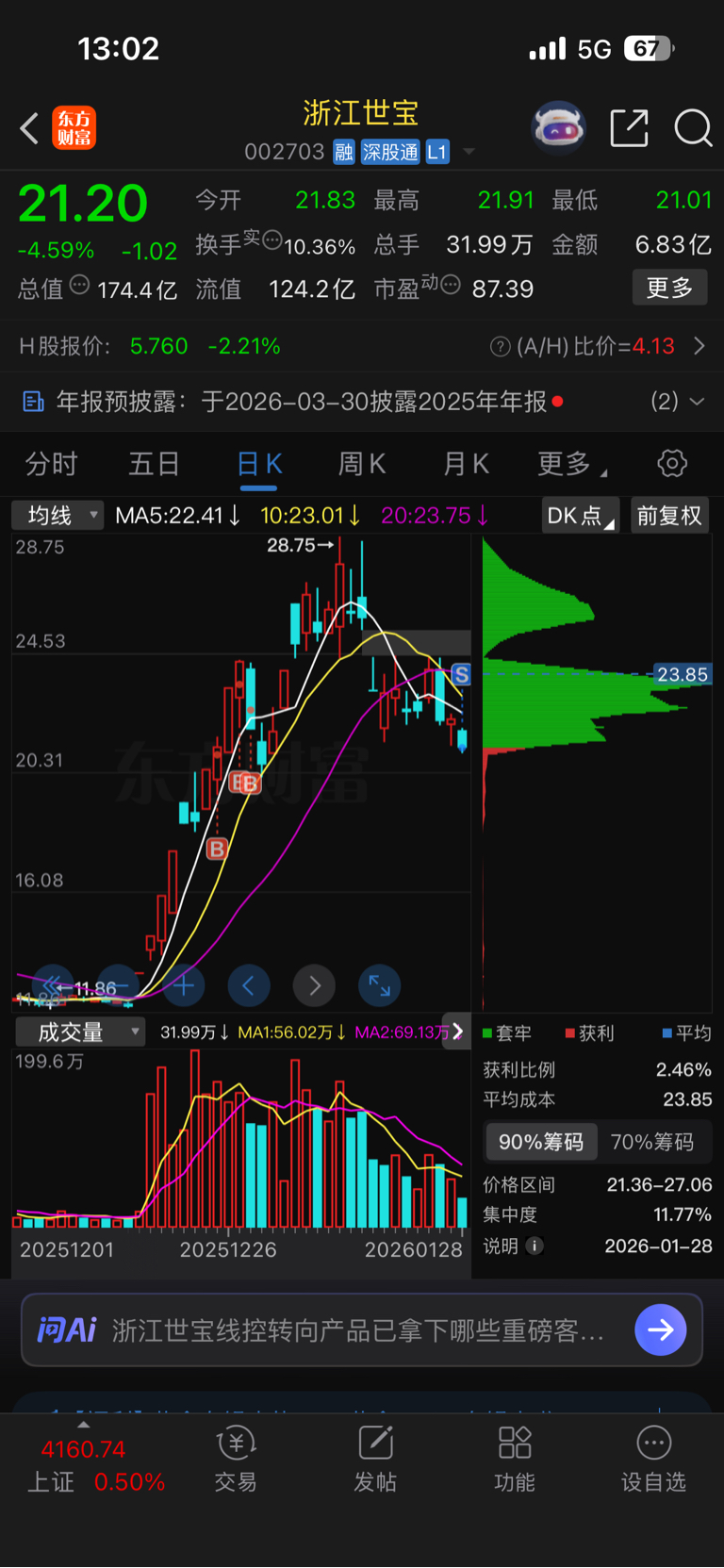 $浙江世宝(SZ002703)$ 格局一个月,略亏。认了。