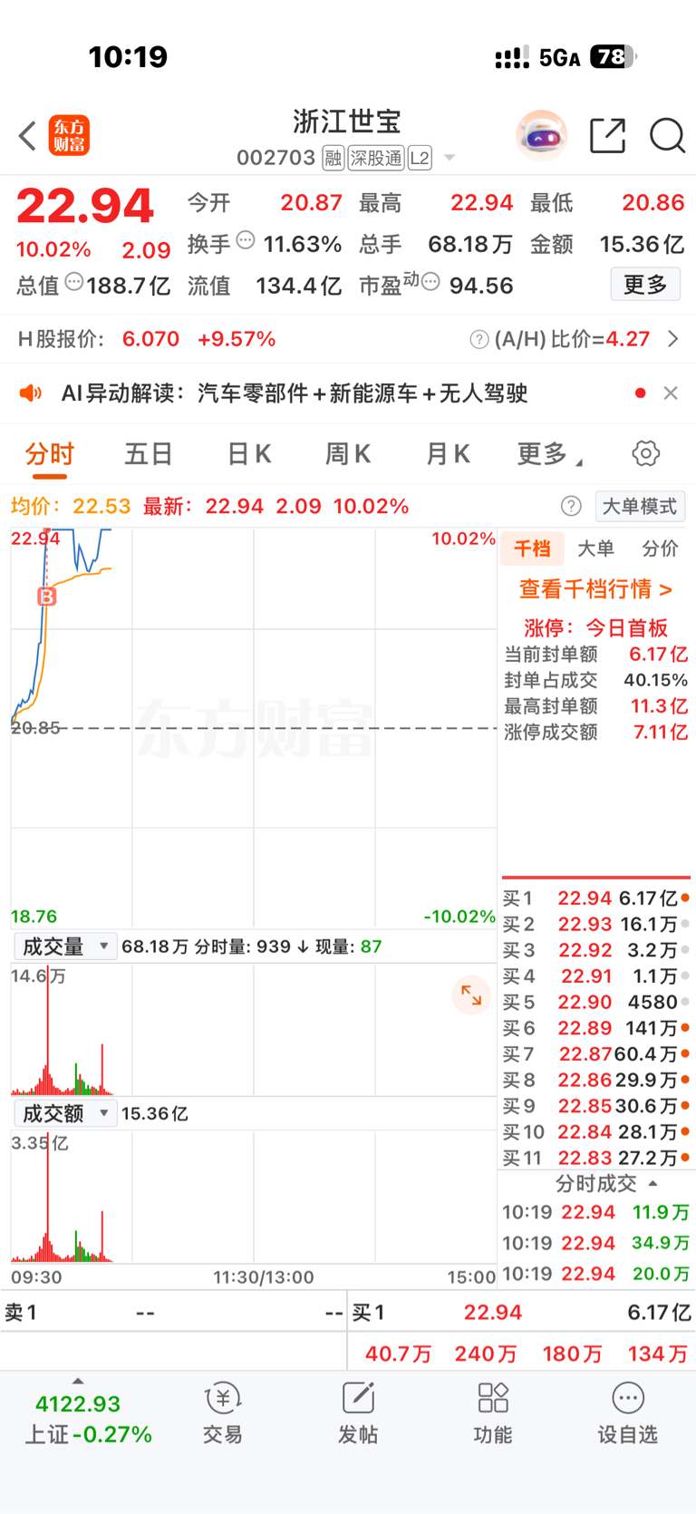 $浙江世宝(SZ002703)$ 主力过年发了个大红包