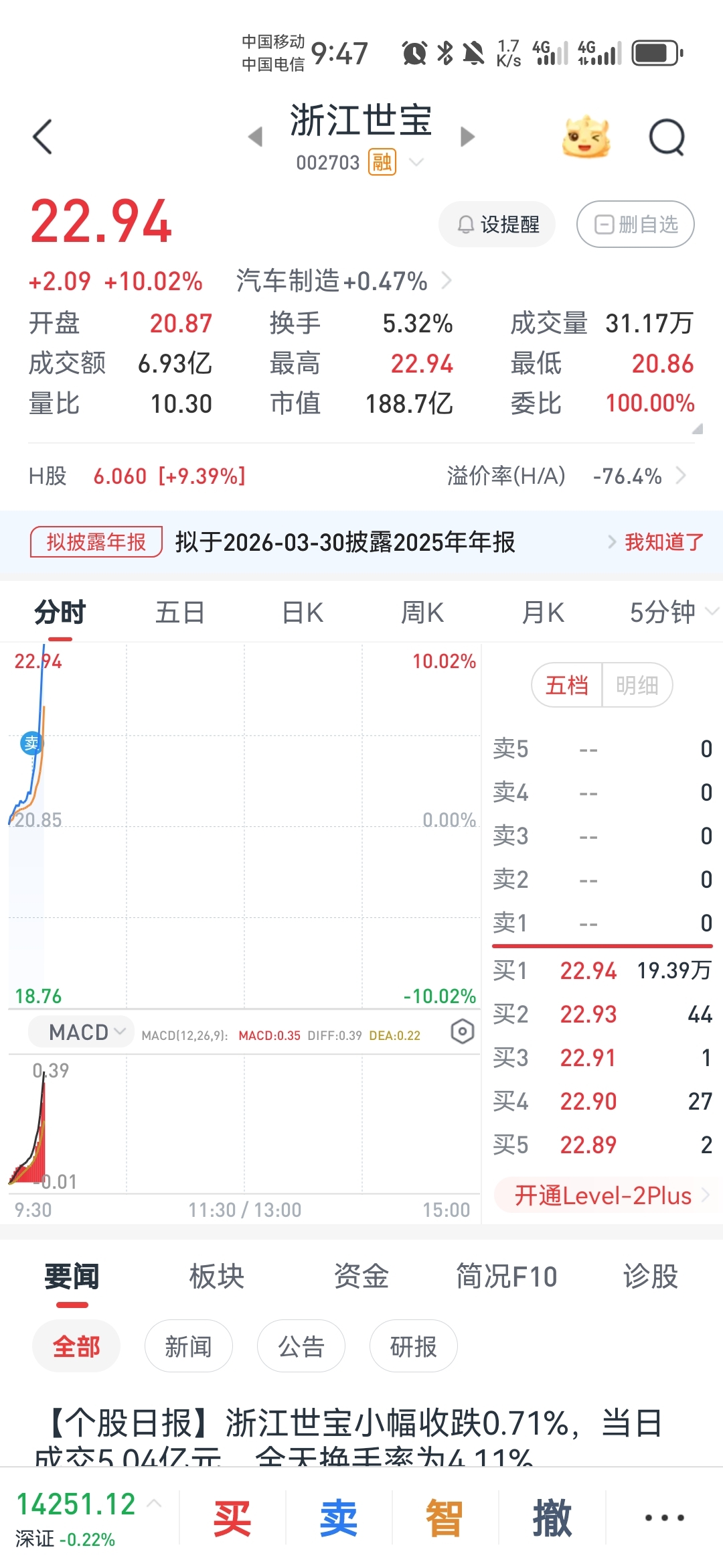 $浙江世宝(SZ002703)$ 我一卖你就涨,就差我那点?
