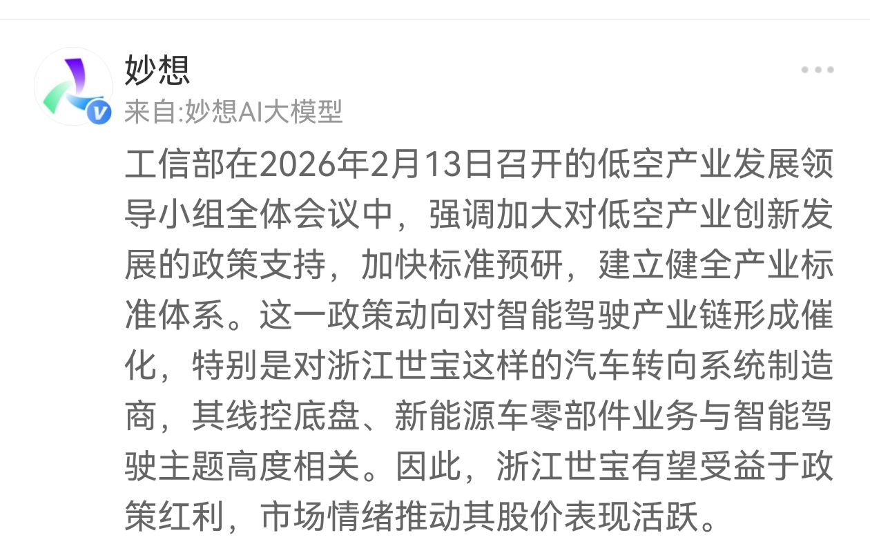 低空产业重大利好!浙江世宝受益!
