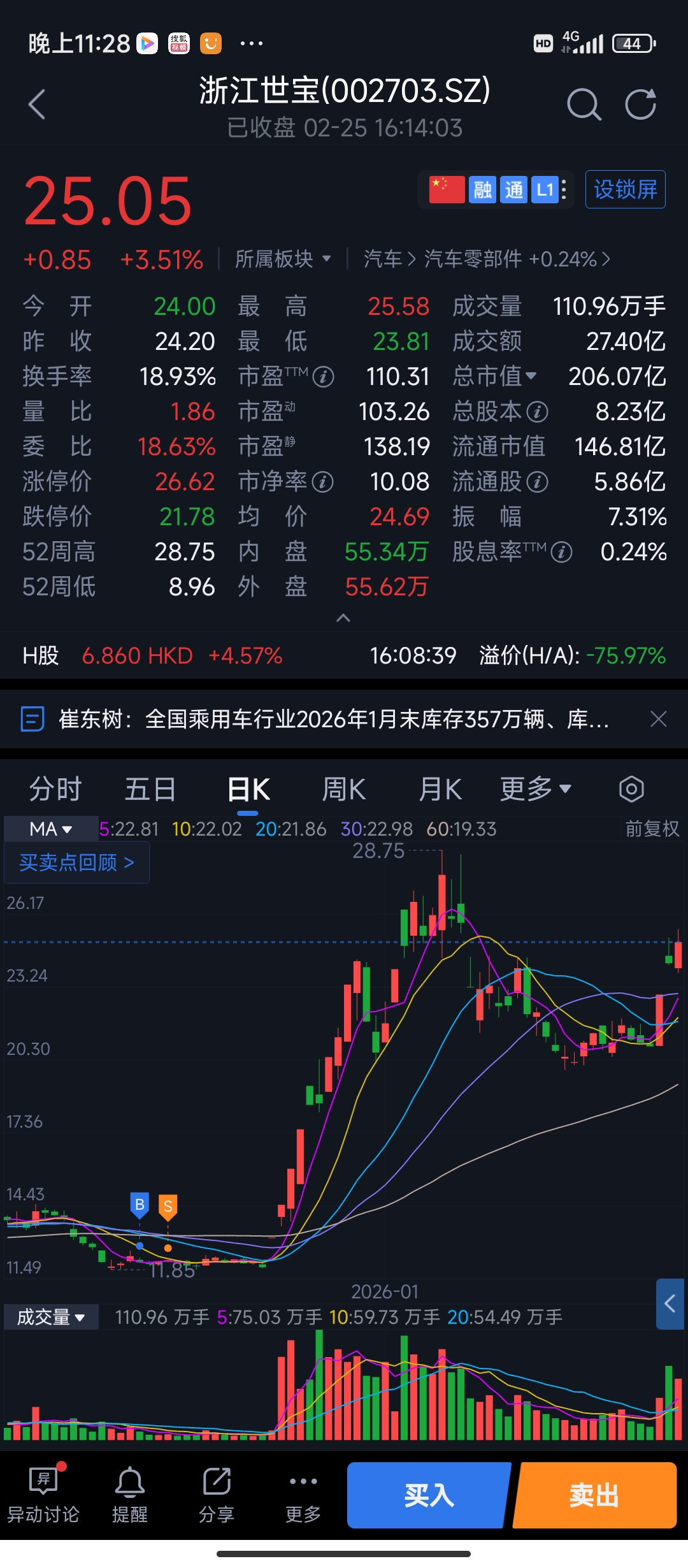 $浙江世宝(SZ002703)$ 今天看了下浙江世宝12块时候我就买了后拿了两天又走了过了几天就开始了主顺浪现在都25了,埃后悔死我了