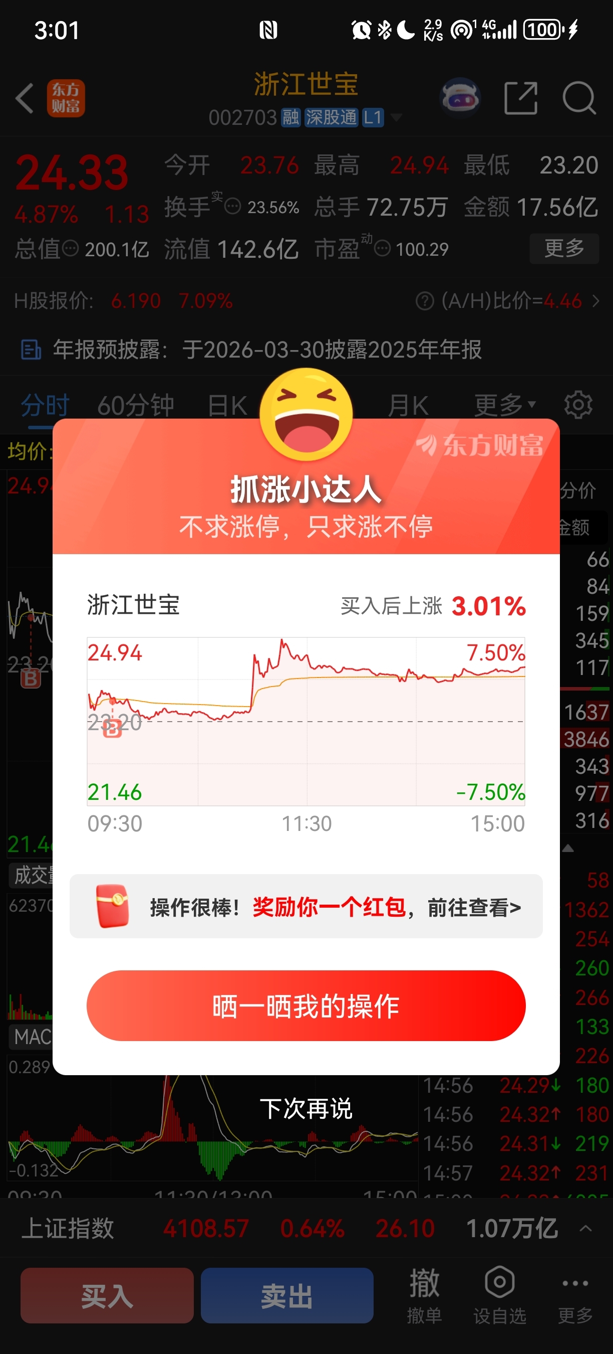 $浙江世宝(SZ002703)$