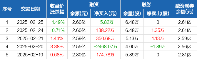 新宝股份:融资净偿还5.82万元,融资余额2.6亿元(02-25)