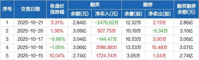良信股份:融资净偿还2476.62万元,融资余额2.84亿元(10-21)