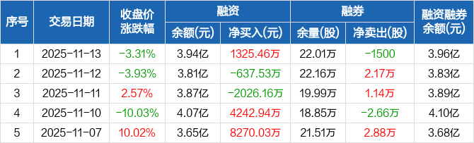 良信股份:融资净买入1325.46万元,融资余额3.94亿元(11-13)