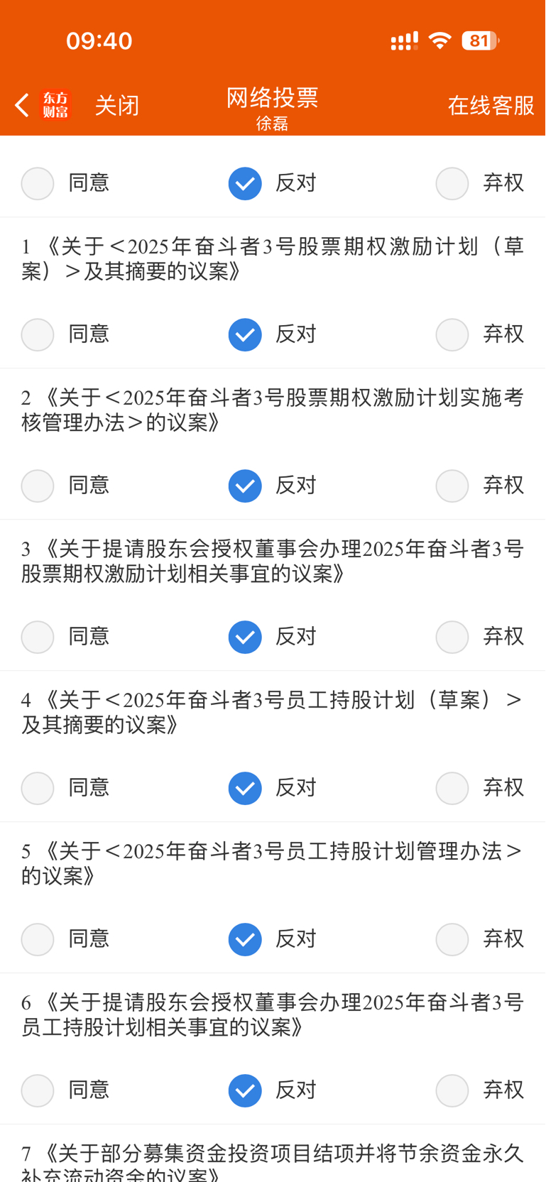 全部反对